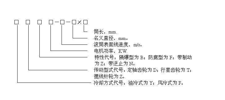 我公司生产的电动滚筒有很多中,每一天的出货量都很大,为了区别用户之间选择的型号产品,会在每台设备上标记上代号,这样员工只需要根据每台设备的型号就可以区别,常用的表示方法如下: