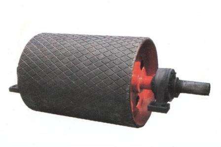 传动滚筒是输送机传递动力的部件。传动滚筒表面有光钢面,人字形和菱形花纹橡胶覆面。小功率、小带宽及环境干燥时可采用光钢面。人字形花纹胶面摩擦系数大,防滑性和排水性好,但有方向性。菱形胶面用于双向运行的输送机。